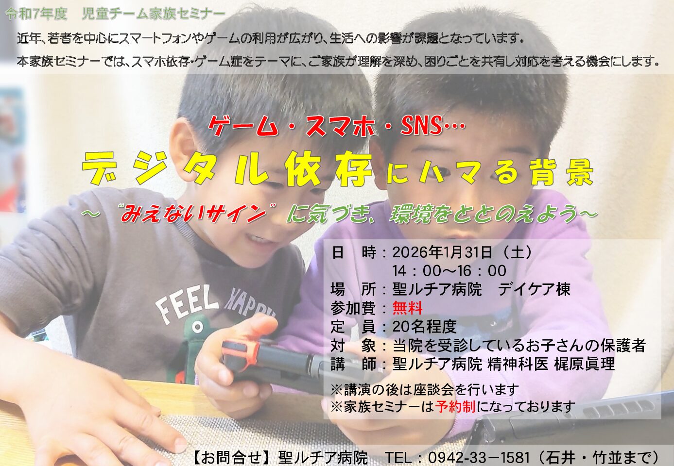 【子どものスマホ・ゲーム利用に悩むご家族へ】 家族セミナー開催のお知らせ